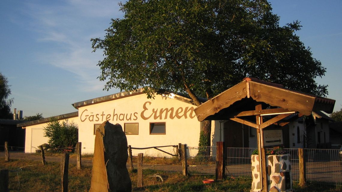 Unsere Hofeinfahrt ist unverkennbar und wird immer wieder als „Visitenkarte“ des Gästehauses Ermen bezeichnet: Seit 2008 heißt hier eine stolze Sammlung ausgewählter Pflüge unsere Gäste und vorbeikommende Touristen willkommen. Die dort ausgestellten fünf Pflüge sind seit vielen Generationen in Familienbesitz und haben alle ihren Dienst auf unseren Äcken verrichtet.